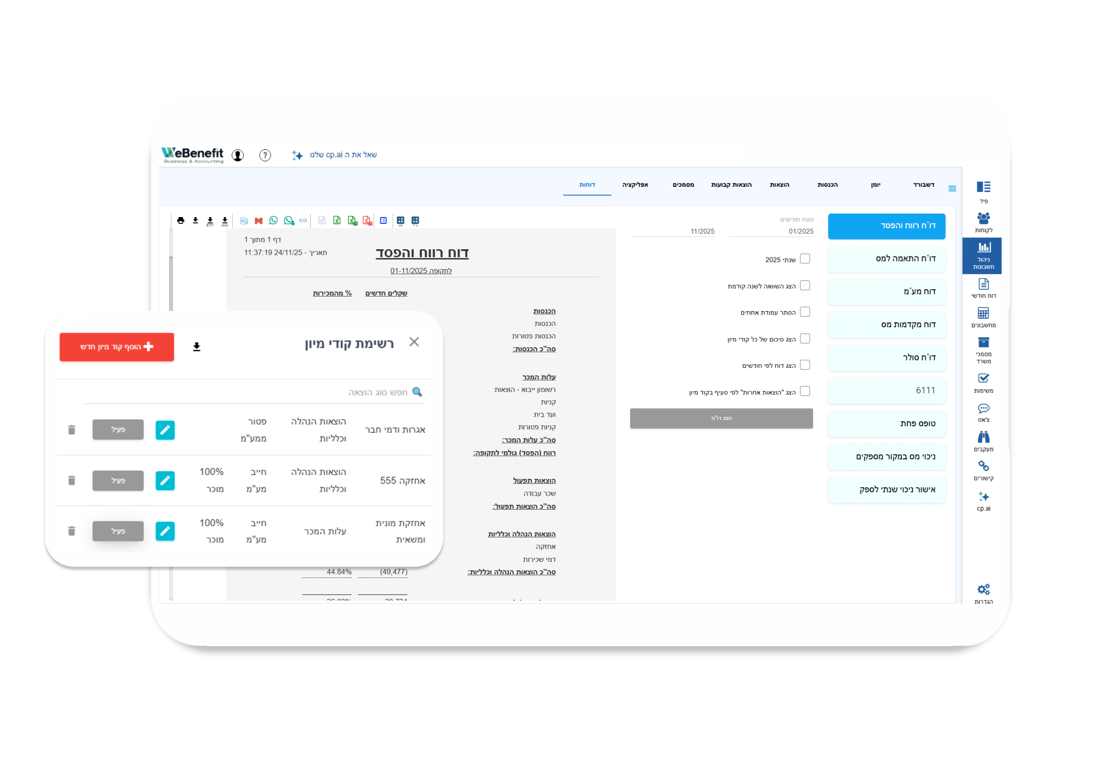 מגוון כלים להנהלת חשבונות קלה ומדויקת, סימולטור מקדמות מס הכנסה ומע"מ, איתור וניהול הוצאות קבועות ועוד.