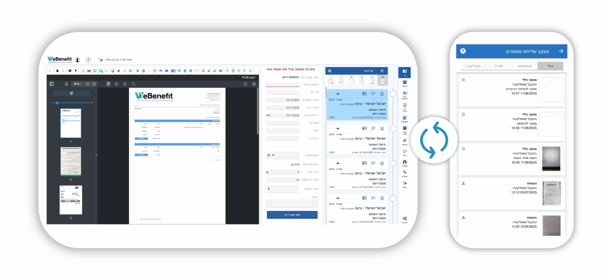 קבלת מסמכים מהלקוחות דרך הוואטסאפ, המייל והאפליקציה וסיווג אוטומטי לתיק הלקוח במערכת.